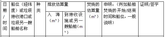 “.3 每次焚燒記錄須包含日期、時間、焚燒開始和結束時的船位(船舶經(jīng)緯度)、被焚燒垃圾的分類、每一類被焚燒的垃圾的估算量(以立方米計);