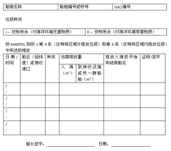 (對海洋環(huán)境有害物質和垃圾記錄簿格式)