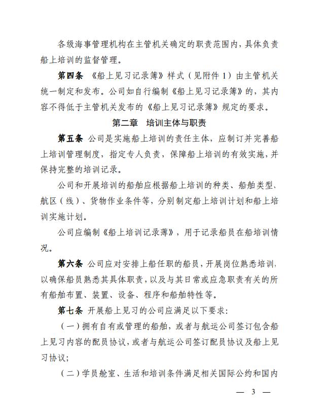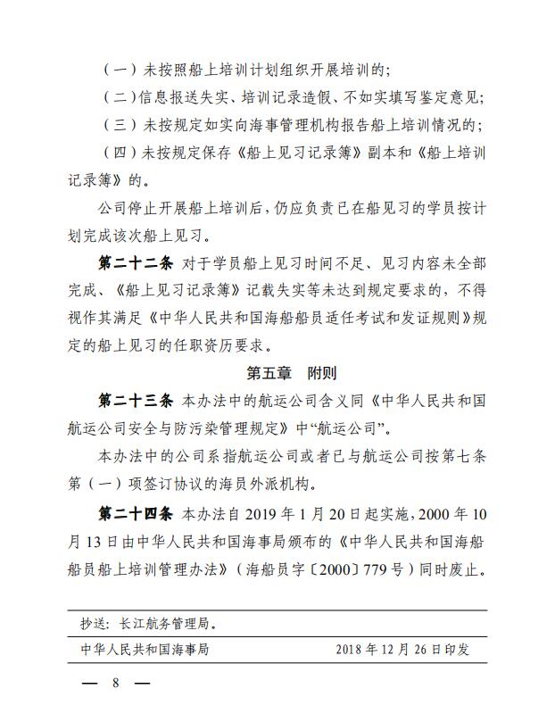 中華人民共和國海事局關于印發(fā)《中華人民共和國海船船員船上培訓管理辦法》的通知