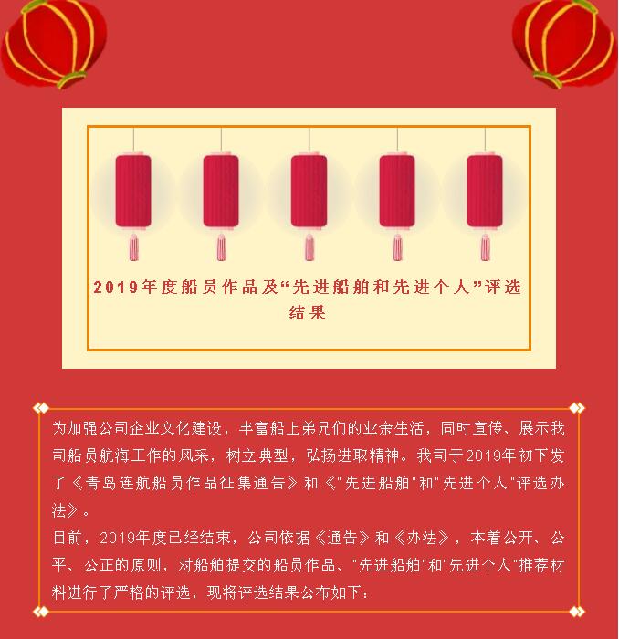 2019年度船員作品及“先進(jìn)船舶和先進(jìn)個人”評選結(jié)果