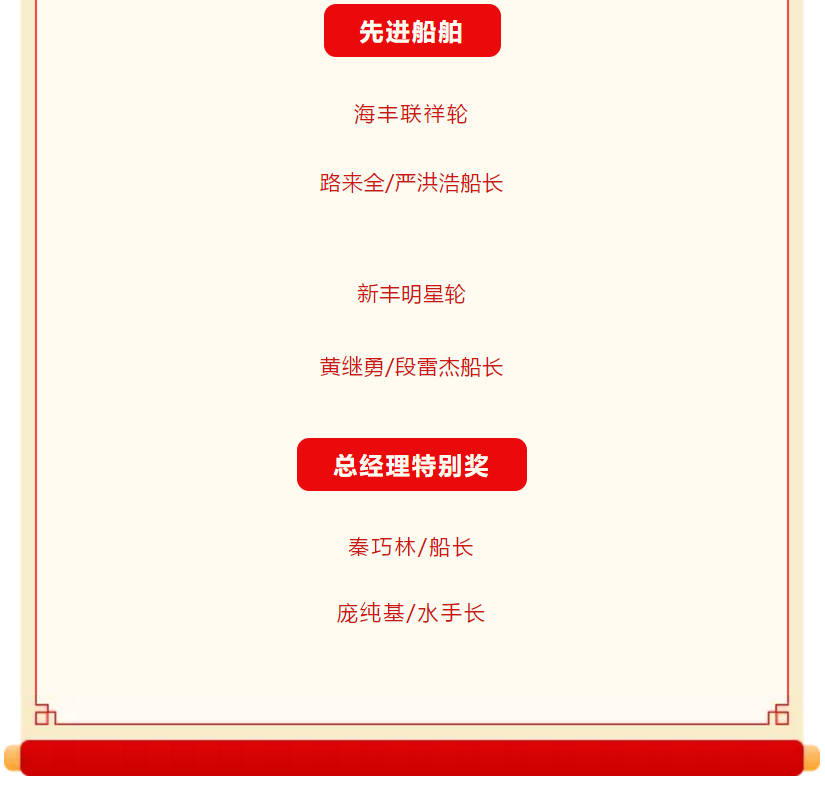 艱辛的一年就要過去了,為表彰先進(jìn),樹立典型,弘揚(yáng)進(jìn)取精神,充分調(diào)動(dòng)廣大船員的積極性、主動(dòng)性和創(chuàng)新性,進(jìn)一步激勵(lì)工作在一線船員的工作熱情,形成“船船爭先進(jìn)、人人比貢獻(xiàn)”的良好氛圍。經(jīng)研究決定,對本年度內(nèi)公司所有派員船舶及所派船員進(jìn)行評比考核,結(jié)合船東對各輪的考核,評選出新的“先進(jìn)船舶”、“先進(jìn)個(gè)人”及“總經(jīng)理特別獎(jiǎng)”,并給予一定的物質(zhì)獎(jiǎng)勵(lì)。